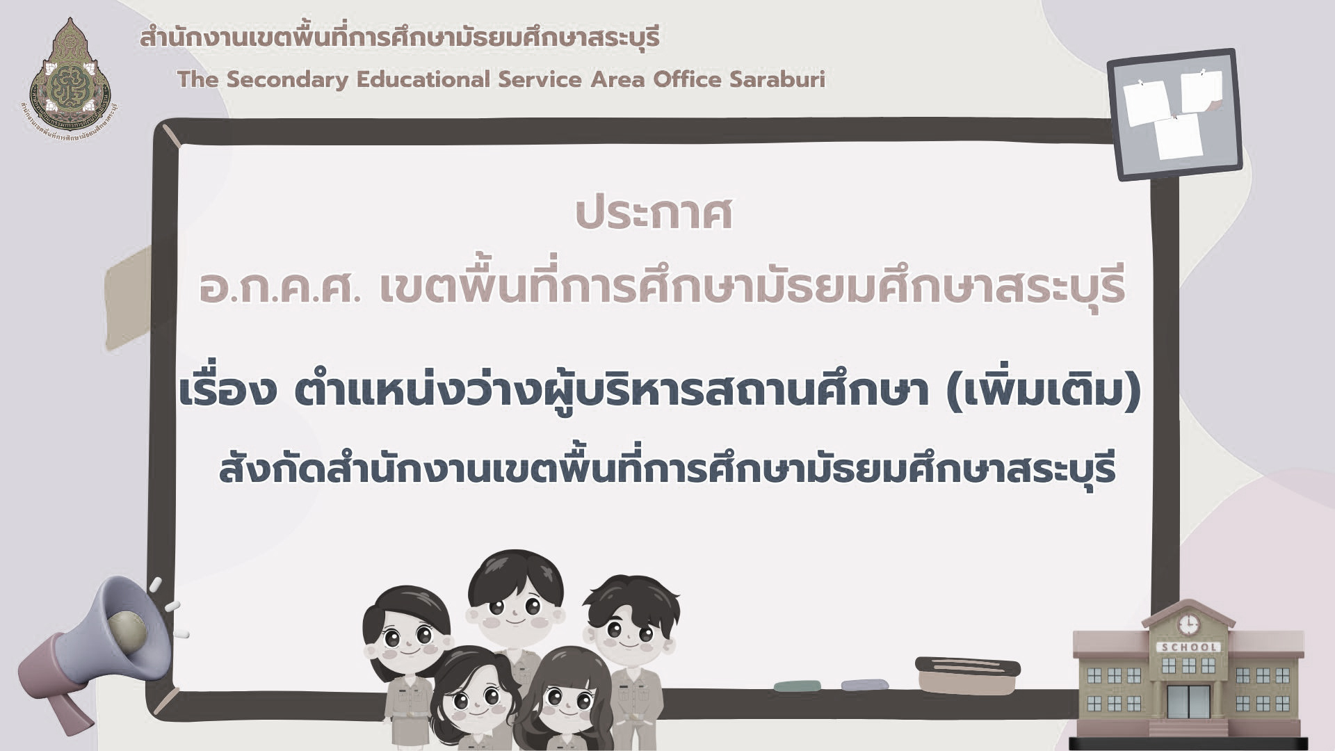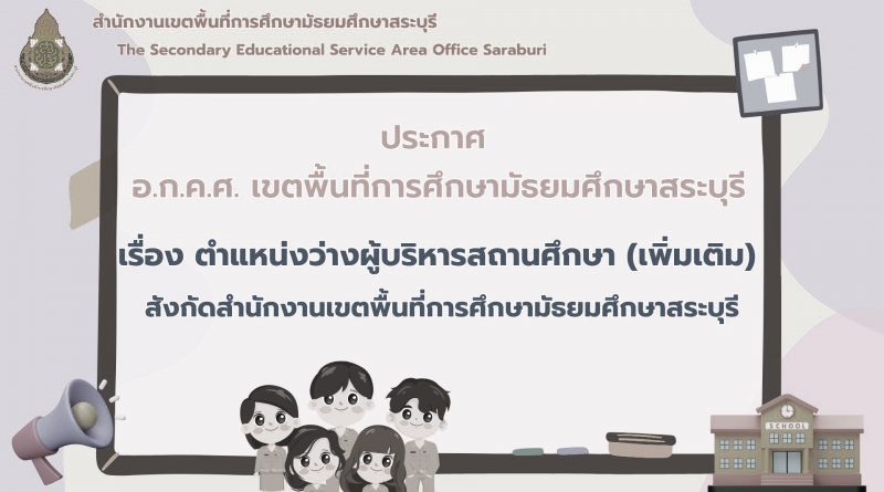 เรื่อง ตำแหน่งว่างผู้บริหารสถานศึกษา (เพิ่มเติม) สังกัดสำนักงานเขตพื้นที่การศึกษามัธยมศึกษาสระบุรี