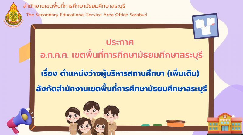 • เรื่อง ตำแหน่งว่างผู้บริหารสถานศึกษา (เพิ่มเติม) สังกัดสำนักงานเขตพื้นที่การศึกษามัธยมศึกษาสระบุรี