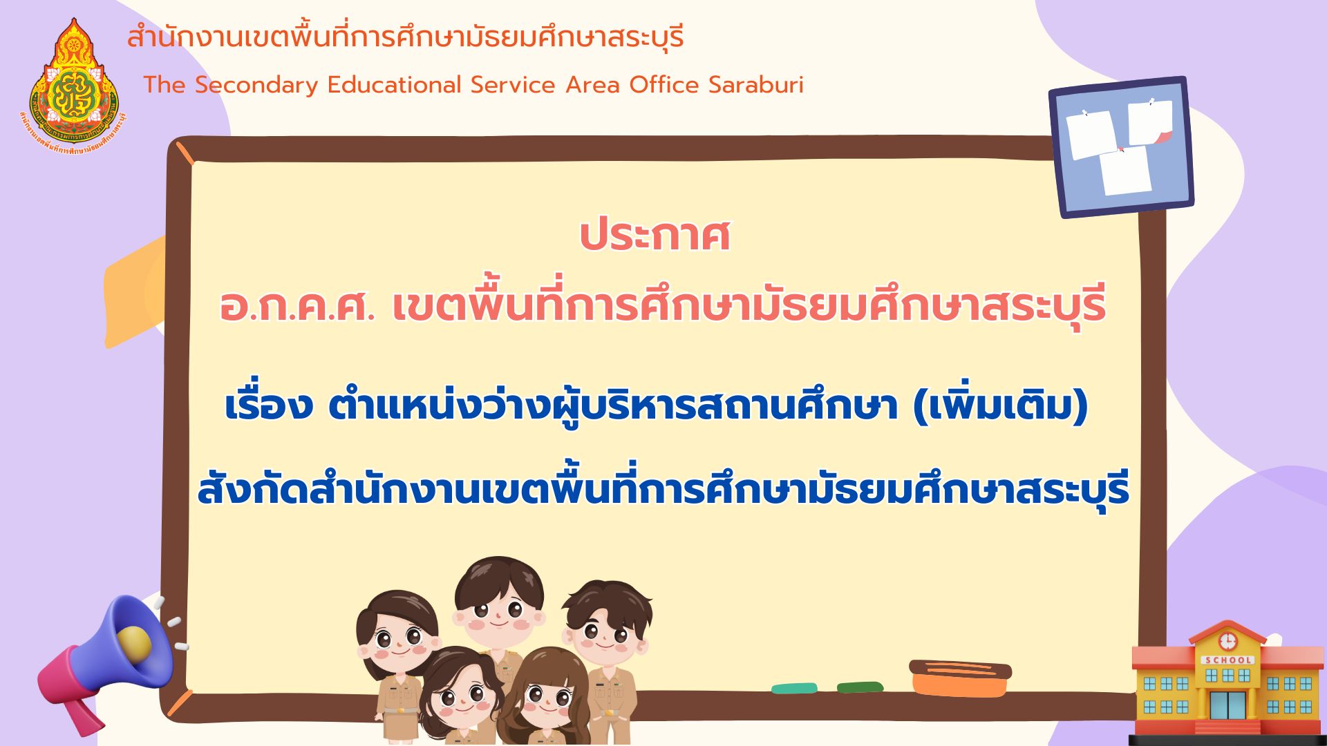 เรื่อง ตำแหน่งว่างผู้บริหารสถานศึกษา (เพิ่มเติม) สังกัดสำนักงานเขตพื้นที่การศึกษามัธยมศึกษาสระบุรี